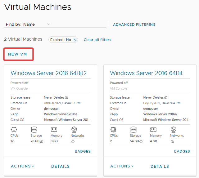 **Step 3.** Click on 'New VM' above the list of VMs