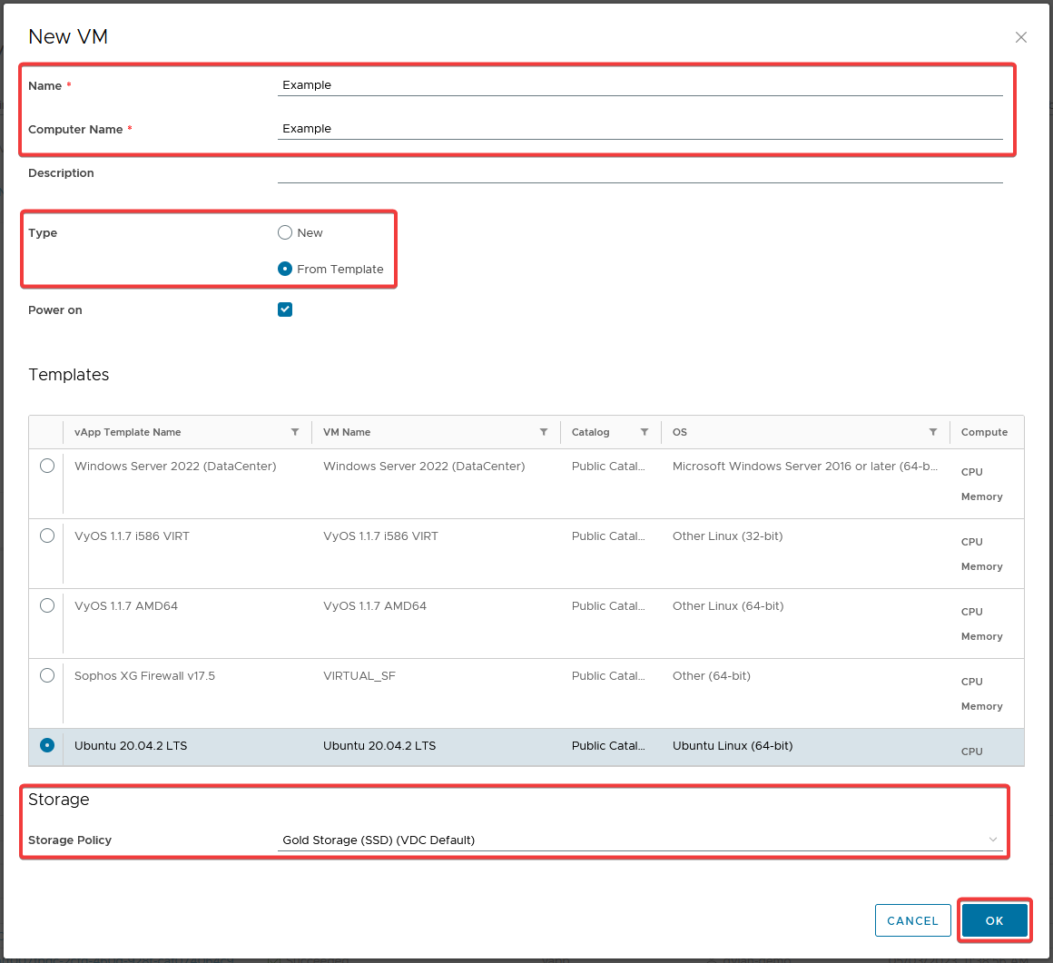 There are a few different ways to create a Virtual Machine, either as a standalone VM or as a VM inside a vApp. You can follow the two guides below to setup a new VM.
