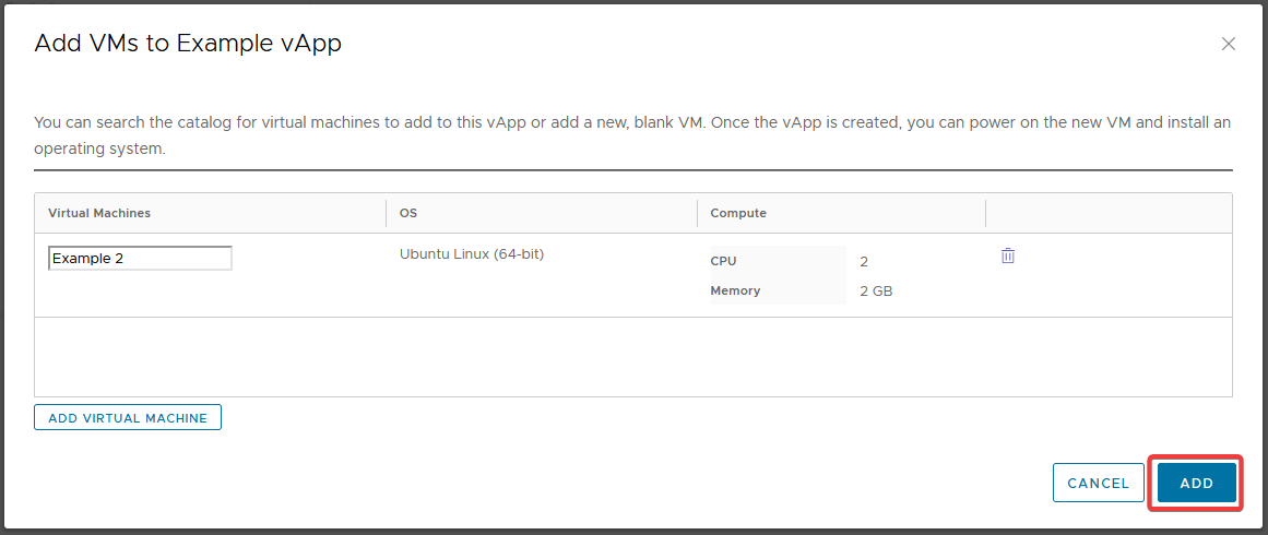 **Step 8.** Now click 'ADD' to start the VM deployment process