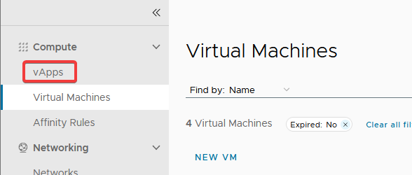 **Step 3.** Click on 'vApps' on the left side of the page