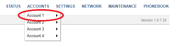 Step 3 - Once logged in click on "Accounts" in the menu at the top of the screen, then select "Account 1" from the dropdown menu