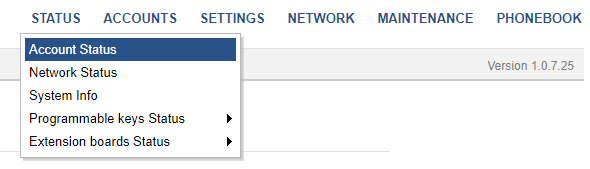 Step 6 - Click "Status" then "Account Status" to check if the extension is registered correctly